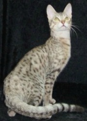 The Serengeti cat was developed by Karen Sausman who had a desire to breed a cat that looks like the wild Serval cat, but not using the Serval in the breeding program. A mammoth challenge with incredible results!